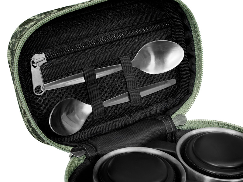 Petites dimensions, grand volume, c'est Delphin COTEA. Un produit peu encombrant qui contient toutes les nécessités pour profiter du thé ou du café au bord de l'eau. COTEA contient deux tasses inox, deux cuillères et deux petits récipients inox pour le sucre ou du café. La trousse contient une petite poche maille pour les sachets de thé. En plus, elle a des zips de qualité et le zip en extérieur a une tirette avec un logo Delphin. COTEA est recouvert en design populaire C2G avec un joli pictogramme qui définit le but de ce produit.