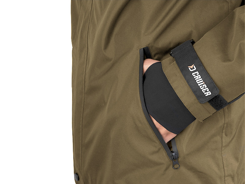 L'ensemble CruiserCROS contient la veste et les pantalons vendus individuellement pour que vous puissiez combiner les tailles. La couche externe de la veste et des pantalons est en matériel imperméable avec une colonne d'eau de 5000 mm et les coutures collées. Ces paramètres assurent un confort maximal, la chaleur et la protection contre la pluie pendant vos sessions pêche ou d'autres séjours dans la nature.