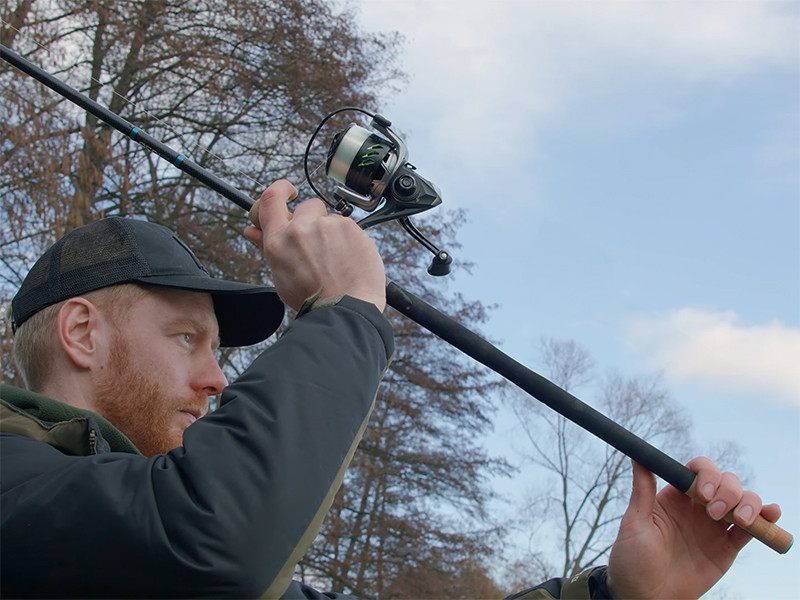 Le motif carbone sur une partie du blank et du moulinet, les éléments bleus et l'inscription AERIS sur le liège créent un design élégant et sportif en même temps qui captivera l'attention de chaque pêcheur au feeder.