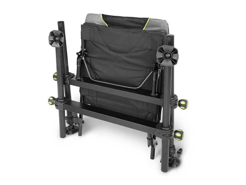 Le fauteuil est compatible avec le bras ProfixARM et la desserte FlatWORX ou d'autres supports avec le même filetage. Après la pêche, vous pouvez retirer les pieds et plier la structure entière pour que le fauteuil soit encore plus compact pendant le transport.