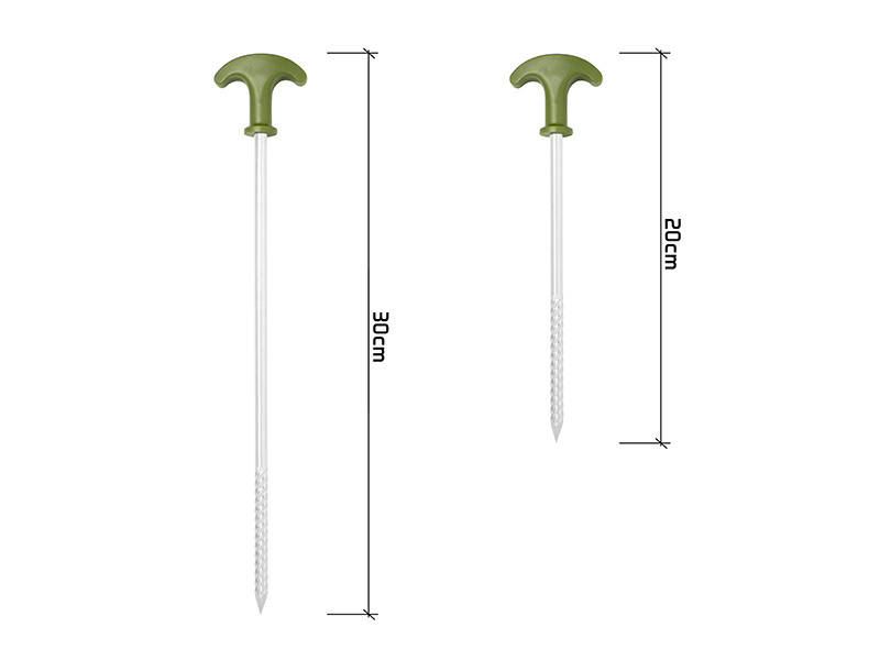 Les pièces de rechange sont numérotés dans la forme - Nom de produit #numéro. Le numéro derrière le # est la partie de pièce de rechange spécifique. Notamment avec les cannes, on indique les scions avec un numéro #1 et la poignée avec un numéro le plus grand. Lors de la canne à deux éléments, la poignée est indiquée avec le numéro #2. Lors de la canne à trois éléments, la poignée est indiquée avec le numéro #3, parce que numéro #2 est un élément central. Les cannes feeder font une exception, car le scion n'est pas une pièce de rechange et le numéro #1 décrit la partie la plus haute du blank - une pièce dans laquelle on insѐre les scions feeder. Un lot de piquets supplémentaires pour vos bivvys, vos parapluies de pêche ou d'autres types d'abri. Des piquets ont des extrémités plastiques vertes qui tiennent bien même quand vous les tapez dans le sol plusieurs fois. Grâce à la vrille, il est très simple d'enfoncer les piquets dans le sol dur et sec. Les pointes sont recouvertes par une protection plastique pendant le transport.