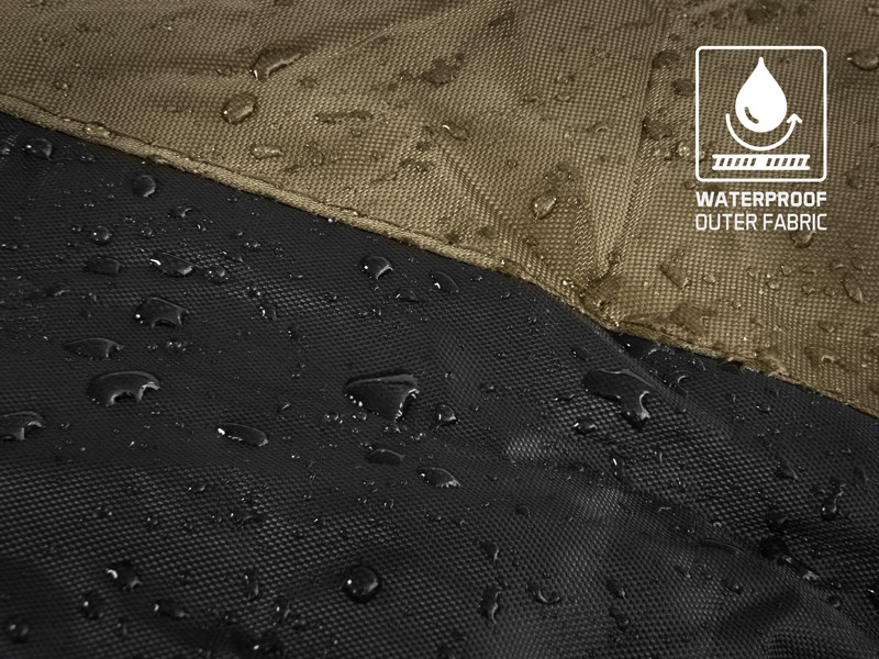 Le tissu externe est durable et imperméable, vous pouvez alors dormir sous les étoiles même quand il pleut et le sol est humide. De plus, il est facile à maintenir, il suffit de l'essuyer et de laisser sécher. Pour que le sac de couchage tienne à sa place, il y a des capuches élastiquées pour votre lit de camping. Il y a aussi une sangle de fixation avec une grande boucle.