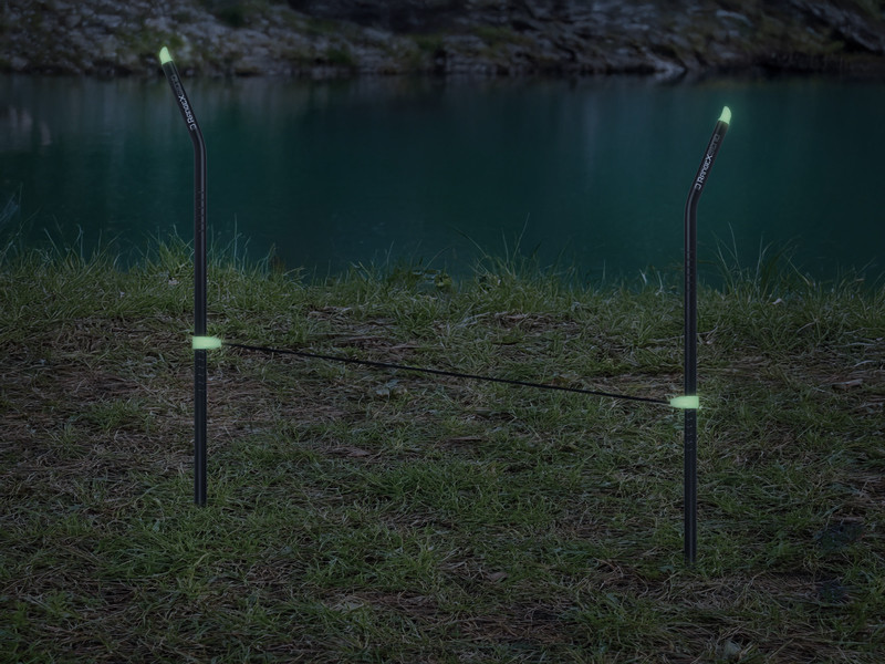 RangeX BEND comprend deux piques en aluminium avec des rainures pour que la ligne ou la tresse ne glisse pas lorsque vous mesurez la distance. Les parties supérieures sont courbées pour tenir la ligne ou la tresse sur la place pendant la manipulation. Pour mieux repérer les piques, ils sont munis d'une surface haute-visibilité en haut. De plus, pour mieux les enfoncer dans le sol, ils sont pointus avec un filetage au bout. Il y a aussi un cordon de mesure de 3,5 m qui a des anneaux à chaque extrémité pour y attacher les piques. RangeX BEND est livré dans une housse textile pratique.