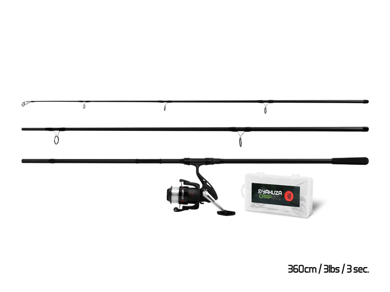 La canne carpe du combo YAKUZA est 360 cm long et elle a une action parabolique qui vous permet de profiter du combat même avec des petits poissons. Elle est bien sûr assez puissante pour maîtriser des poissons plus grands et des lancers précis sur votre lieu de pêche.