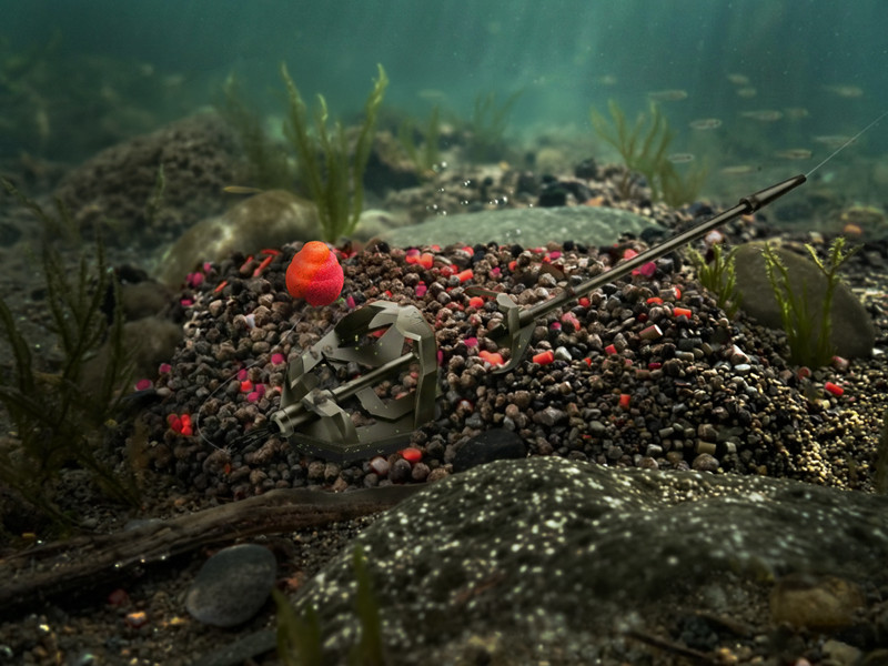 3. Enfilez le wafter sur l'hameçon, placez-le dans le moule avec les pellets et enfoncez-le dans le method feeder.