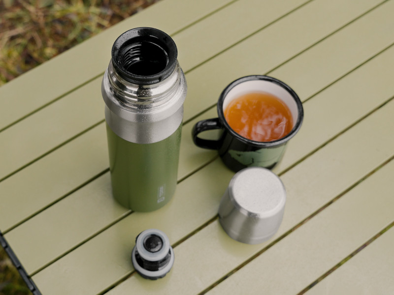 Une fermeture sophistiquée assure une étanchéité parfaite : une fois fermée, elle ne laisse pas passer la moindre goutte de liquide. Un élément pratique est une partie supérieure de la bouteille isotherme qui, une fois dévissée, sert comme une tasse. Vous n'avez donc pas besoin d'emporter de la vaisselle supplémentaire, ce que vous apprécierez particulièrement lorsque vous devez réduire au maximum le volume de vos affaires.