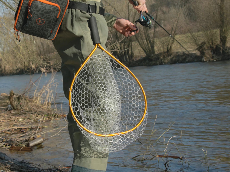 Les pièces de rechange sont numérotés dans la forme - Nom de produit #numéro. Le numéro derrière le # est la partie de pièce de rechange spécifique. Notamment avec les cannes, on indique les scions avec un numéro #1 et la poignée avec un numéro le plus grand. Lors de la canne à deux éléments, la poignée est indiquée avec le numéro #2. Lors de la canne à trois éléments, la poignée est indiquée avec le numéro #3, parce que numéro #2 est un élément central. Les cannes feeder font une exception, car le scion n'est pas une pièce de rechange et le numéro #1 décrit la partie la plus haute du blank - une pièce dans laquelle on insѐre les scions feeder. Une épuisette professionnelle avec un cadre métallique et un filet doux et transparent est conçue spécialement pour les pêcheurs de salmonidés et pour la pêche no kill. Une finition élégante et les détails fonctionnels en font un outil convenable pour les pêcheurs exigeants qui veulent protéger leur prise.