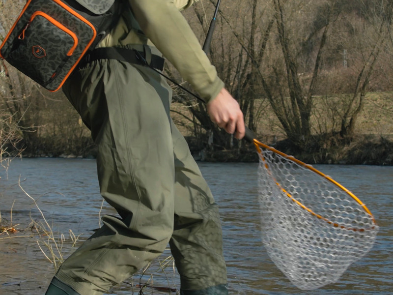 La poignée en mousse EVA assure une prise en main fiable et confortable, même avec les mains mouillées. Ce matériau est facile d'entretien, sèche rapidement et se nettoie facilement. L'épuisette contient également un cordon élastique avec un mousqueton pour l'attacher à la ceinture, au sac à dos ou à la veste.